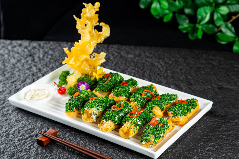 鲜荠菜脆虾卷
